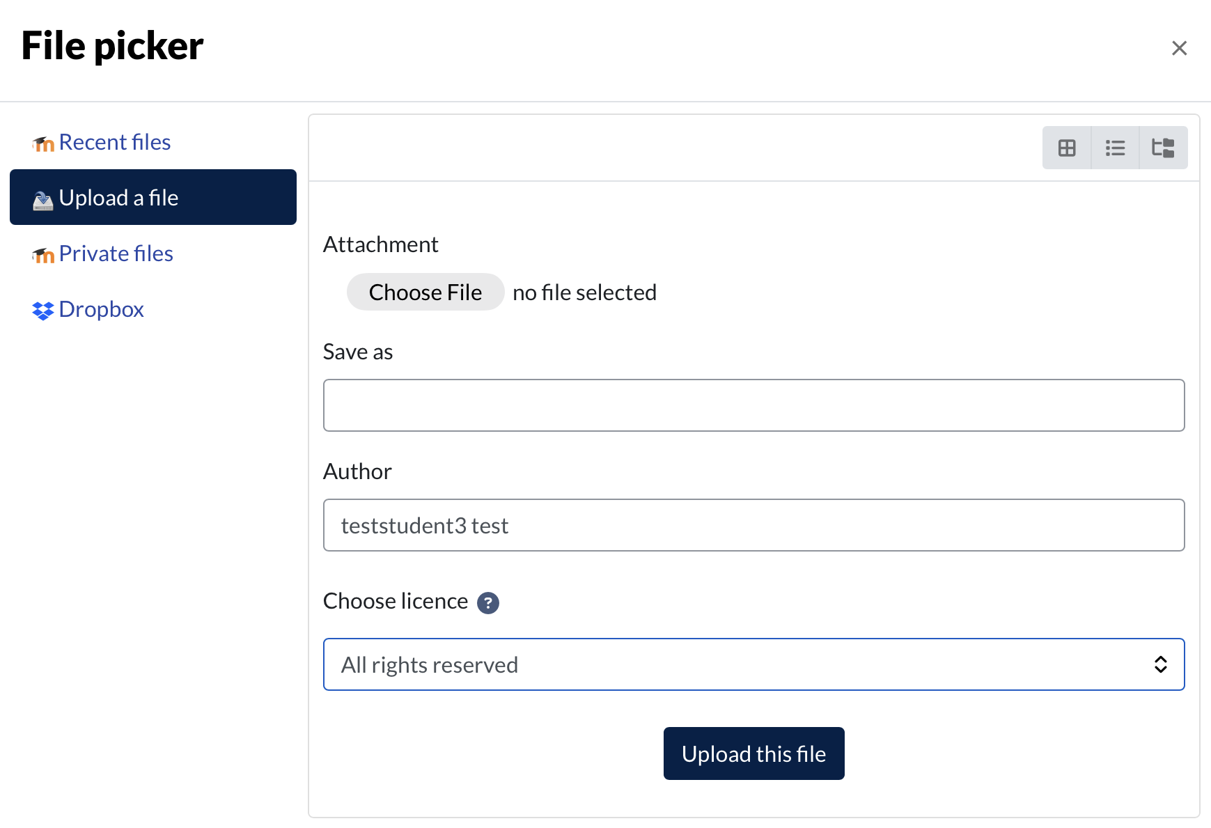Click the Choose File button in the File picker box and select Choose File from the menu that opens.