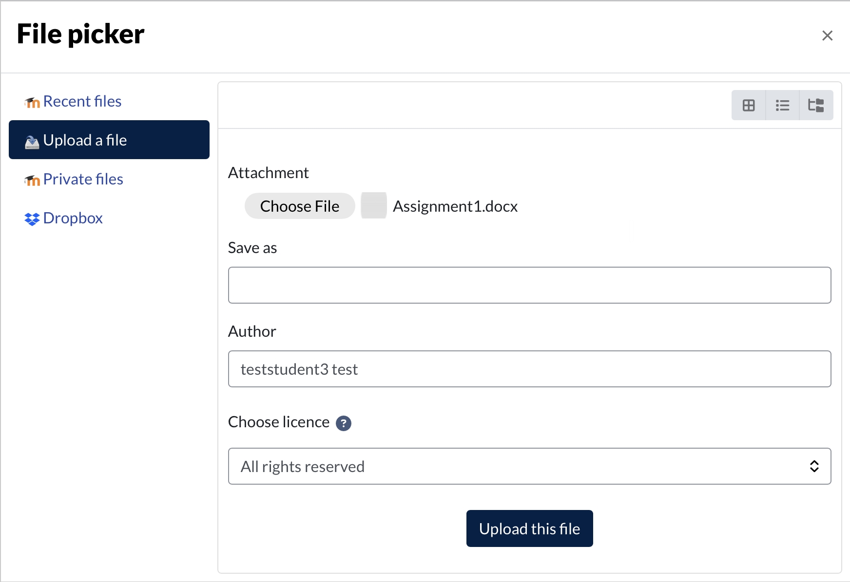 Please note, the instructions below detail the process for uploading an assignment but the same method using the file picker box can be used for uploading attachments to forum posts.