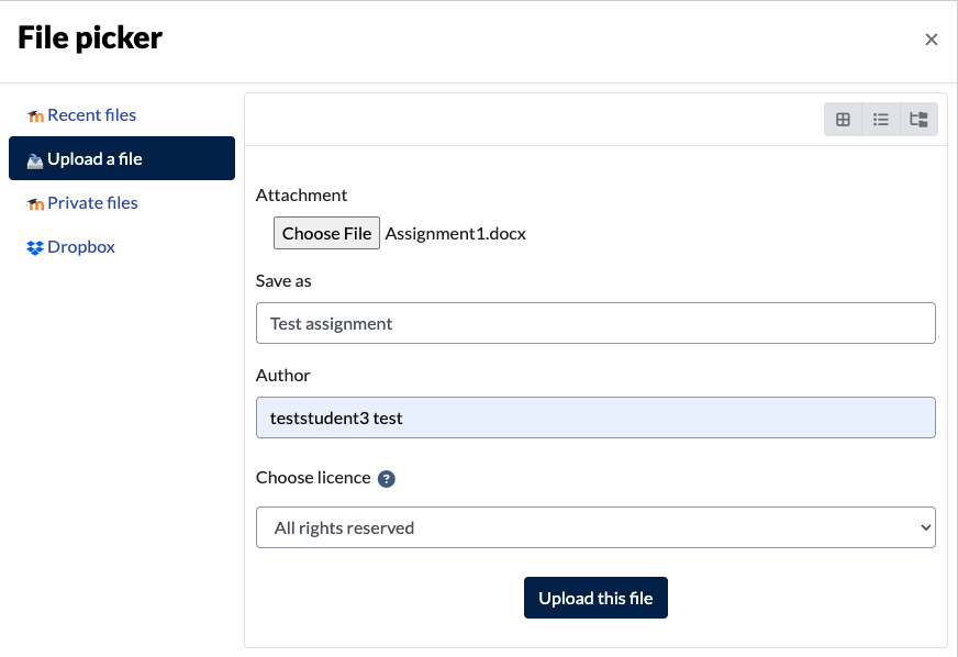 • Select the Add file icon  on the top left-hand side of the box. This will bring up the File picker window.